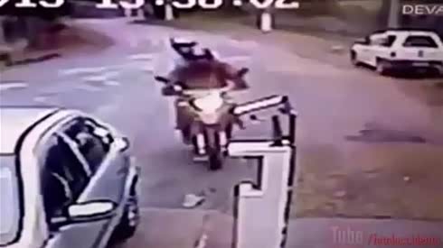两男子骑摩托打劫,料不到对方是个狠角色