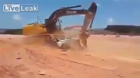 结了几辈子仇!挖掘机疯狂残暴肢解小汽车