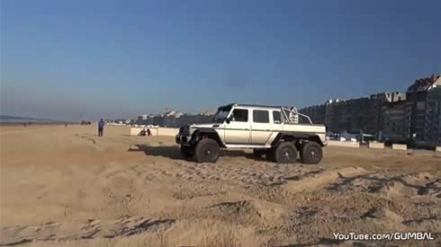 爽爆!奔驰Mercedes-Benz G63 AMG 6x6 沙滩秀飘移