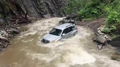 超级牛掰 丰田普拉多湍急河流中涉水