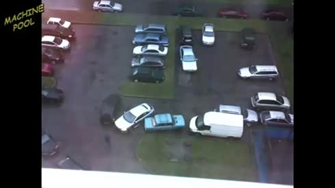这种宣传很到位 四辆大众皮卡拽倒烟囱