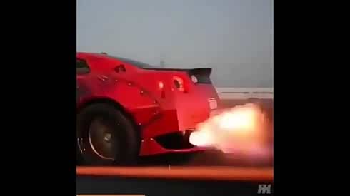 好似在放炮! 日产GT-R一路喷火疾驰