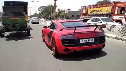 车牌号是亮点! 摩托骑士追拍奥迪R8