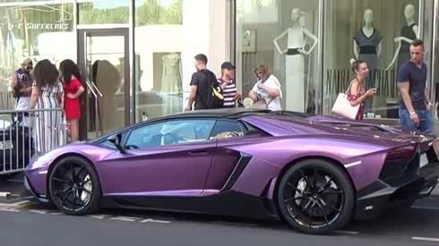 太抢眼了 街拍紫色的兰博基尼Aventador