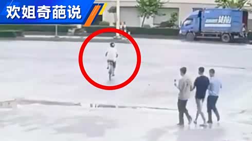 女子骑自行车过马路 人还在车没了