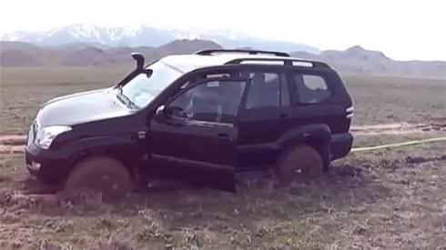 给跪了!史上最牛司机驾SUV冲击泥潭