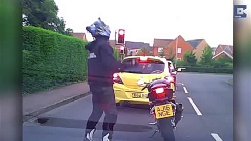 好有喜感的样子 车友骑着摩托车跳起舞