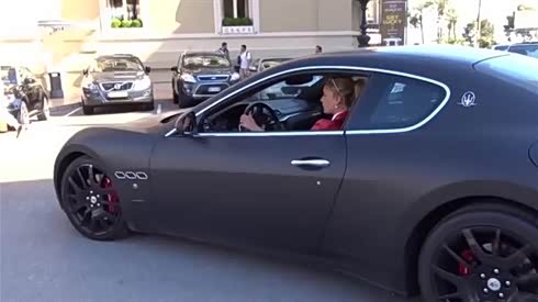 红色皮衣女汉子 驾驶玛莎拉蒂街头拉风