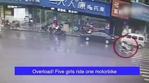 太侥幸!五个姑娘同坐一辆电动车逛街