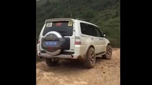 这么陡也能上!国内车友驾帕杰罗爬坡