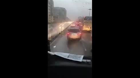 惹不起的家伙 看鸵鸟在公路上任性狂奔