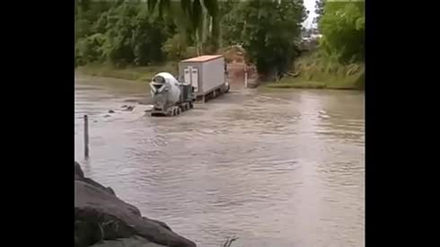 吓死人 越野车过大河鳄鱼旁边虎视眈眈