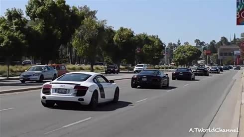 豪车开会 十八辆奥迪R8领衔招摇过市