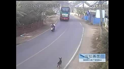 监控实拍:雨天带女友骑摩托车耍酷 意外扑街 一路滑行...