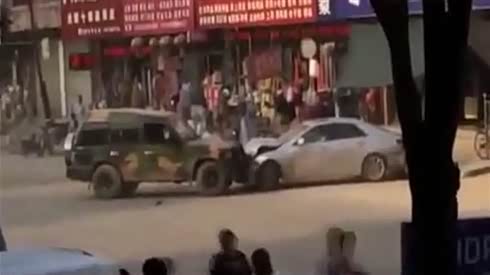 两车疯狂对撞 越野车司机提刀追砍小车车主