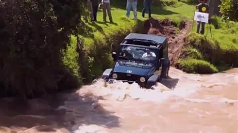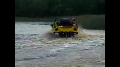 吉普牧马人 过汹涌河流 差点上不来