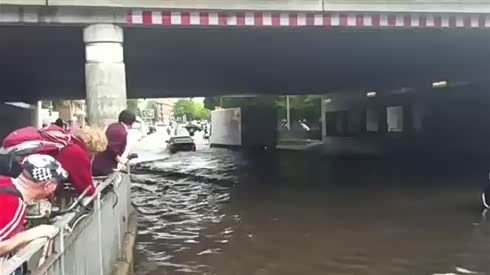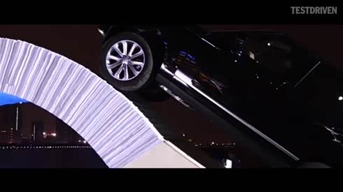 惊险!路虎揽胜 驶过用纸搭建的拱桥