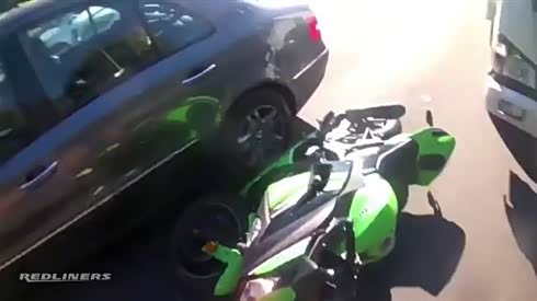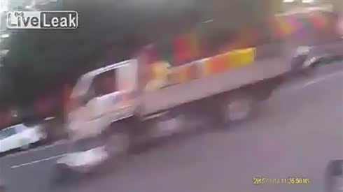 太惨 摩托车火并大卡车