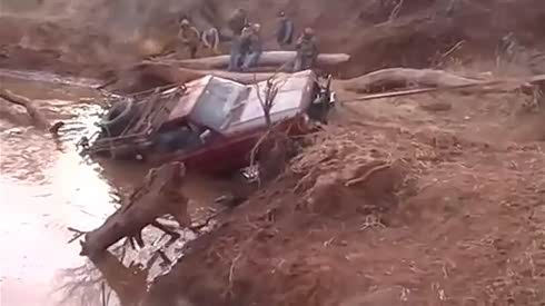 实拍Jeep大切诺基爬坡意外栽入深水坑中
