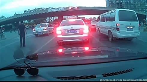 监控实拍:太拼了!路遇拦车乞讨 抓着后视镜 拖走也不放手...