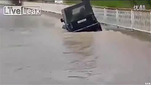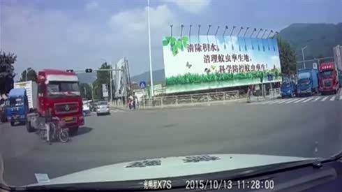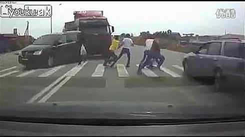 监控实拍:电车男与大货车抢道 瞬间被秒杀...
