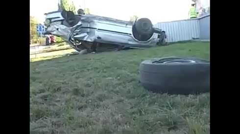 监控实拍:这样也能翻车!小面包超车 遇路面不平 悲吹了...