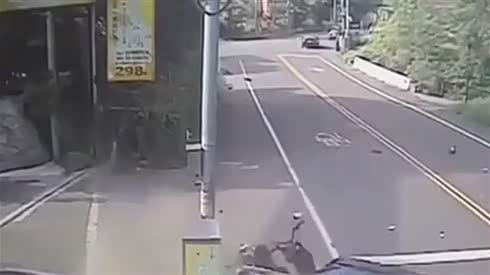 监控实拍:小车狂飙 连续撞飞两摩托手...