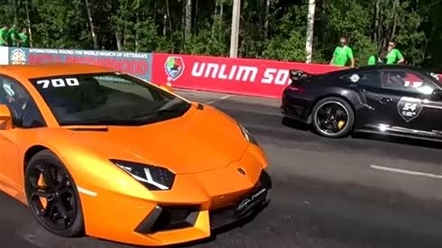 保时捷991 Turbo S vs 兰博基尼Aventador 直线加速比拼