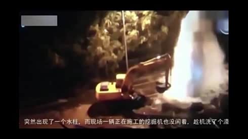 马路喷10米水柱 挖掘机洗澡爽嗨了