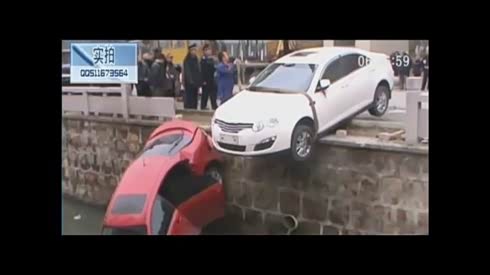 美女新手上路酿惨祸 一车坠河 一车半悬
