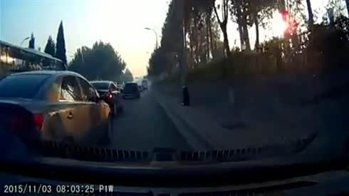 与死神擦肩而过 奔驰如此淡定...
