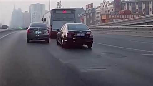 监控实拍:雅阁日产斗气 快速道互相推搡 互不示弱...