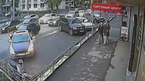 监控实拍:这什么车啊 轻轻一碰就翻了...