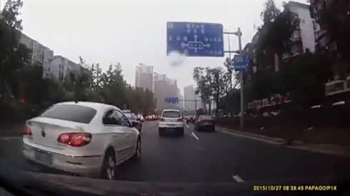 这碰瓷看的也醉了 路中间华丽转身坐上车盖