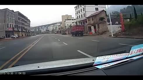 好险啊!大货车猛扭头 与死神擦肩而过!