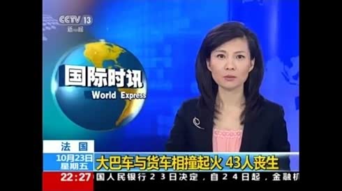 法国大巴车与货车相撞起火 造成43人死亡