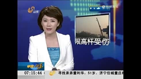 吊车撞断限高杆 肇事车变成救援车