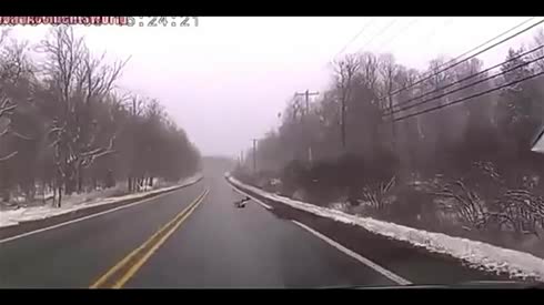 吓一跟头 梅花鹿被司机按喇叭声音吓瘫