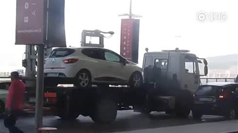 看谁还敢乱停车 实拍国外的拖车利器
