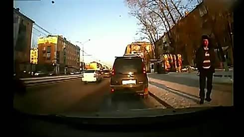 开车司机太狠了! 大摩斗气砸汽车被撞飞