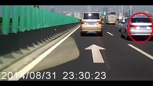 实拍 两车高架上斗气 致使后车车毁人亡!