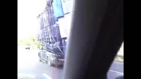 实拍:不作不死!摩托男开挂 在行驶大货车后面躲雨...