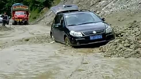 很无奈!通麦天险惊险陷车...