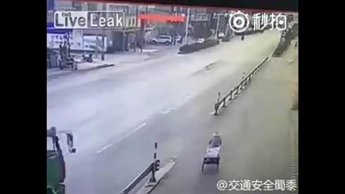 恐怖!男子骑三轮车钻进卡车致命一幕