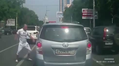 监控实拍:大眼妹在越野车里被吓尿 表情太逗乐