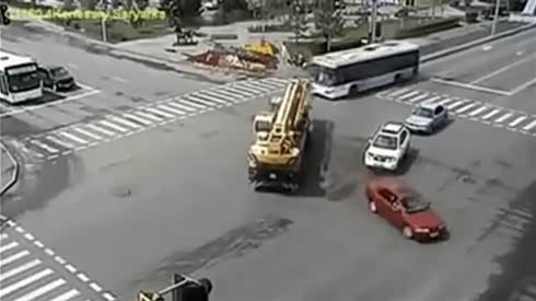 监控实拍:大吊车截停大巴车 方式太粗鲁...