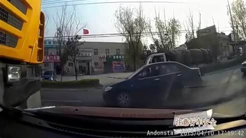 监控实拍:小车失控疯狂漂移 与大货车惨烈相撞 太恐怖...