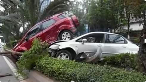 监控实拍:霸气女司机 驾越野车“骑”轿车车顶 飞进隔离带...