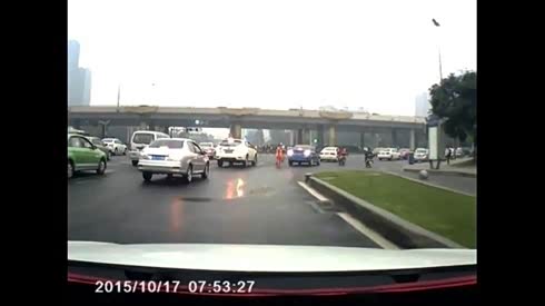 蓝色雪佛兰 突然变道 不打变道灯 导致后车2车追尾