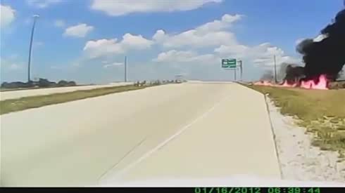 太恐怖 实拍大卡车飞跃公路 爆炸起火